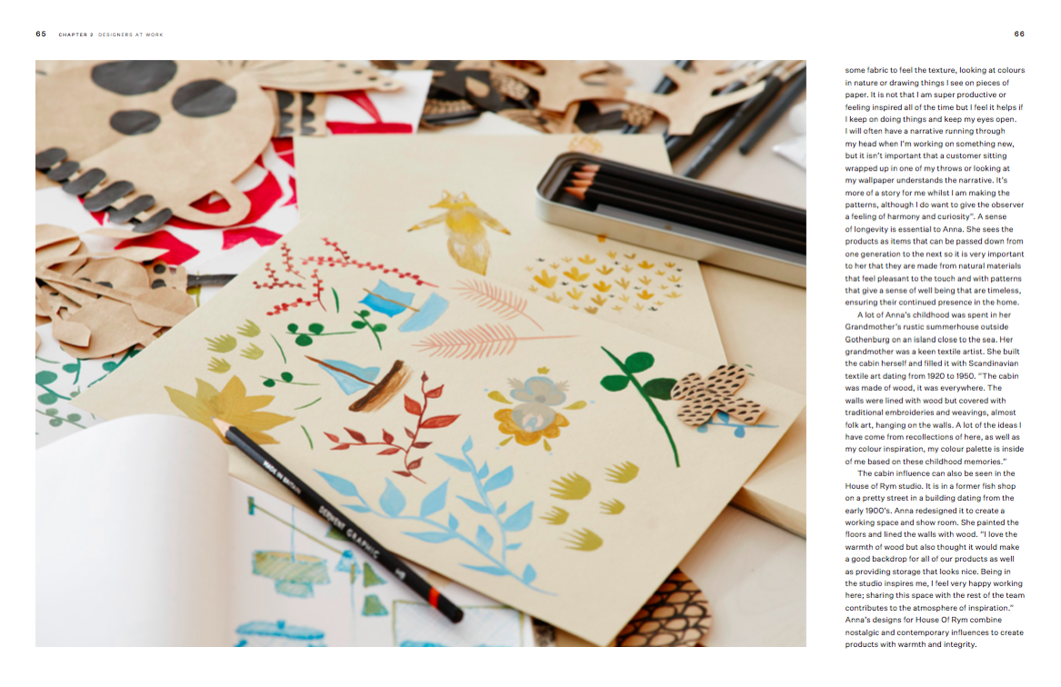 I also wanted to encourage a sense of community, the world is huge and there is room for all the pattern designers out there who are making original work and following their own path. After working with various teams on different interiors shoot, it took a while to get used to working on my own in my studio whilst designing wallpaper, there isn’t always someone around to bounce ideas off or to ask an opinion. So it was really important to me to create a little community within this book and one of my favourite parts of this whole project was talking to the various designers about their inspiration and working methods. We also get to peek inside their homes, as a more personal way of showing those folks still afraid of pattern how the people who actually create the designs use them at home or visualise the patterns being used.