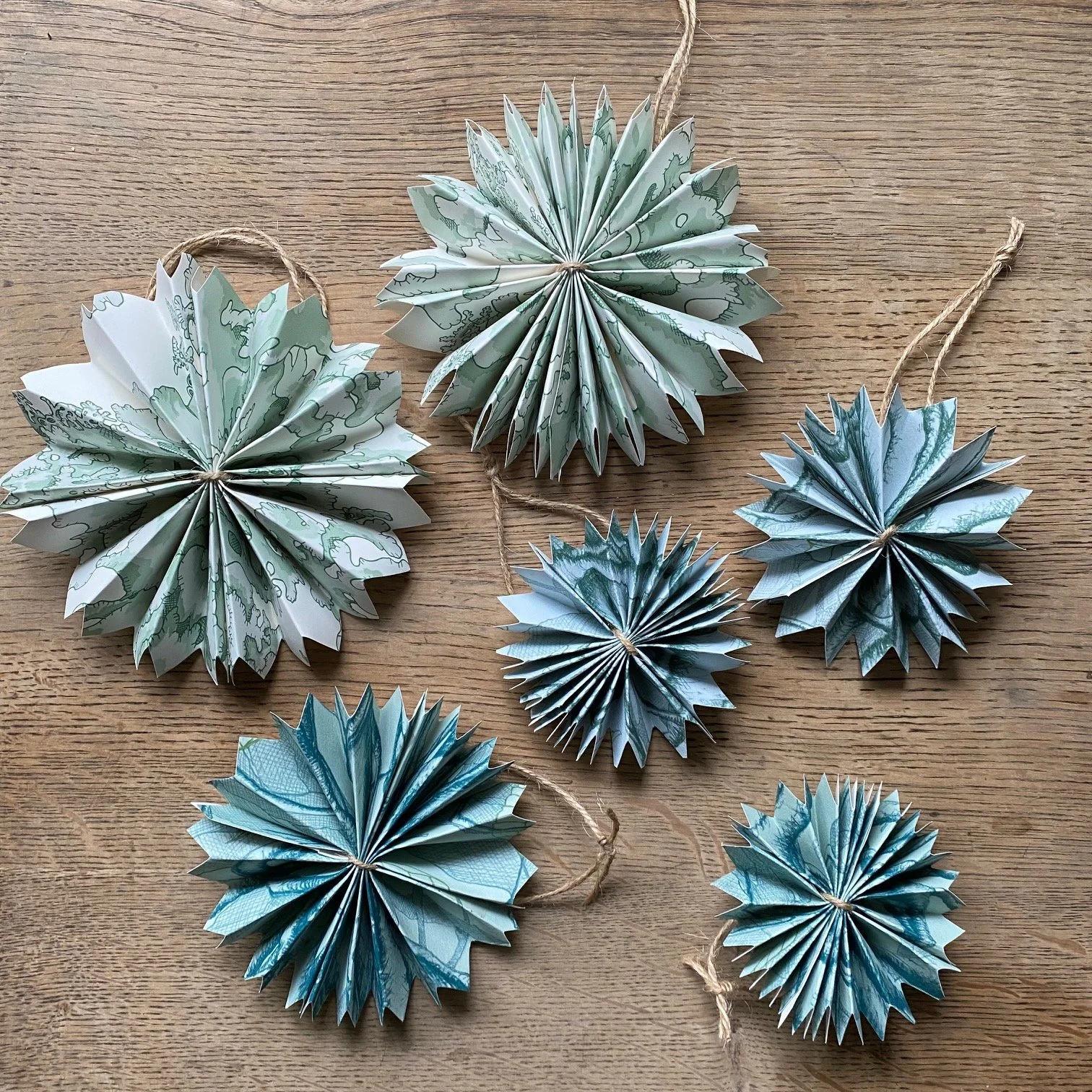 Using left over wallpaper scraps to make beautiful decorations for your home, makes Christmas a little bit more sustainable and guarantees that your decorations will go beautifully with your décor.